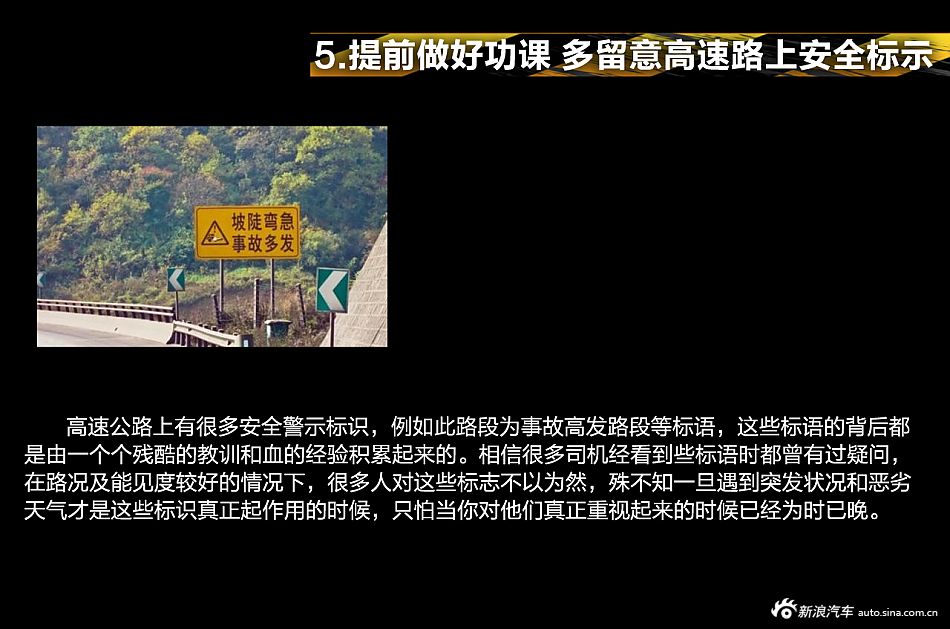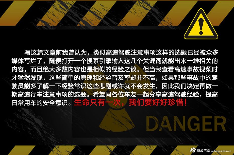 因而新浪用车小组决定再做一期高速行车留意事项的选题。但愿同列位车友一路分享高速驾驶经验,因而新浪用车小组决定再做一期高速行车留意事项的选题。高速驾驶留意事项看似简单,