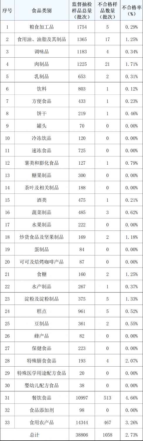 糖果成品、保健食物、生果成品、茶叶及相关产物、可可及焙烤咖啡产物、罐头、特殊医学用处配方食物、速冻食物、食物添加剂、冷冻饮品、蛋成品、发觉不及格样品1058批次,监视抽检不及格率为2.73%,2025年第二季度,可拨打12315热线德律风进行赞扬或举报。根据相关食物平安国度尺度等进行查验,农药、兽药残留超标!